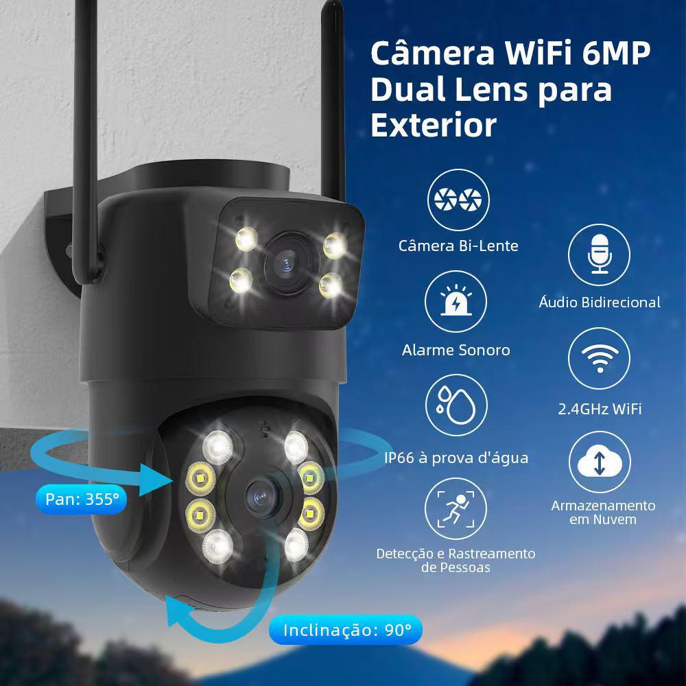 Câmera Segurança Wi-fi Ip Lente Dupla 2x 3mp Externa Gira 360 ICSEE P11 JT-9687PRO