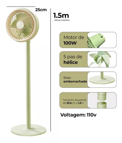 Ventilador 110V De Coluna Retrátil Silencioso Turbo 100w - LLUD0055