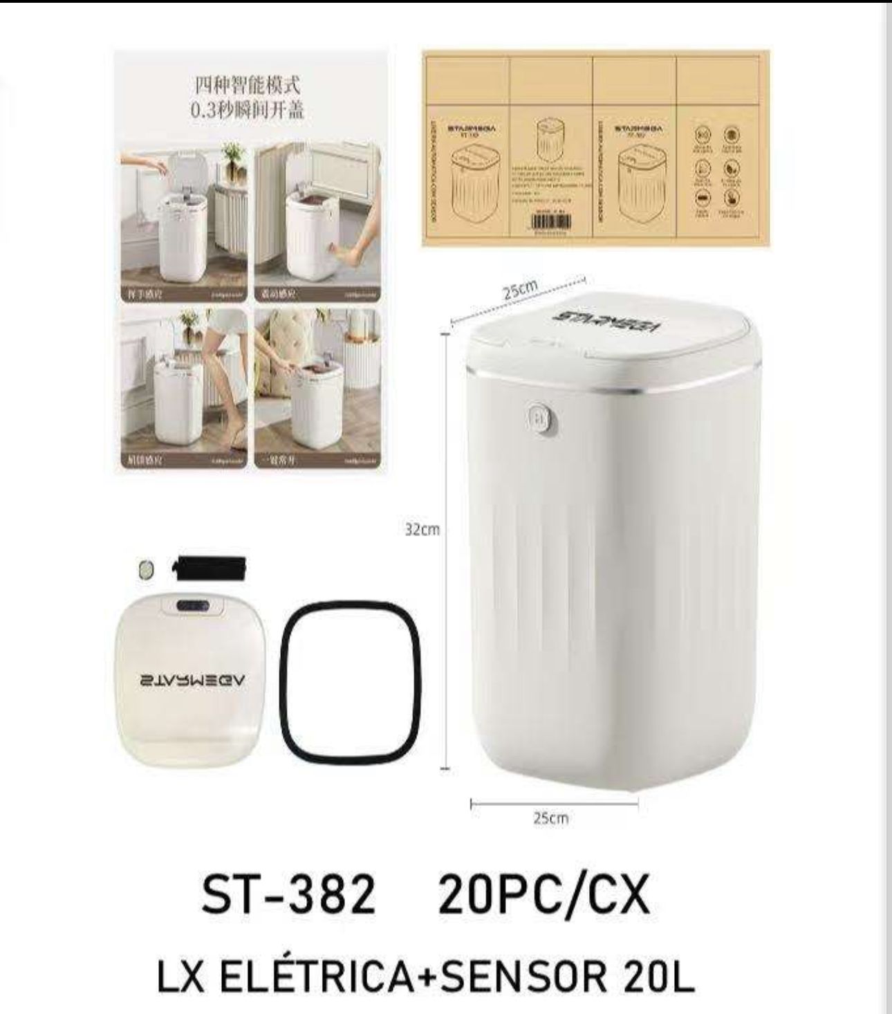 Lixeira Elétrica Automática Sensor Abertura Aproximação 20L ST382