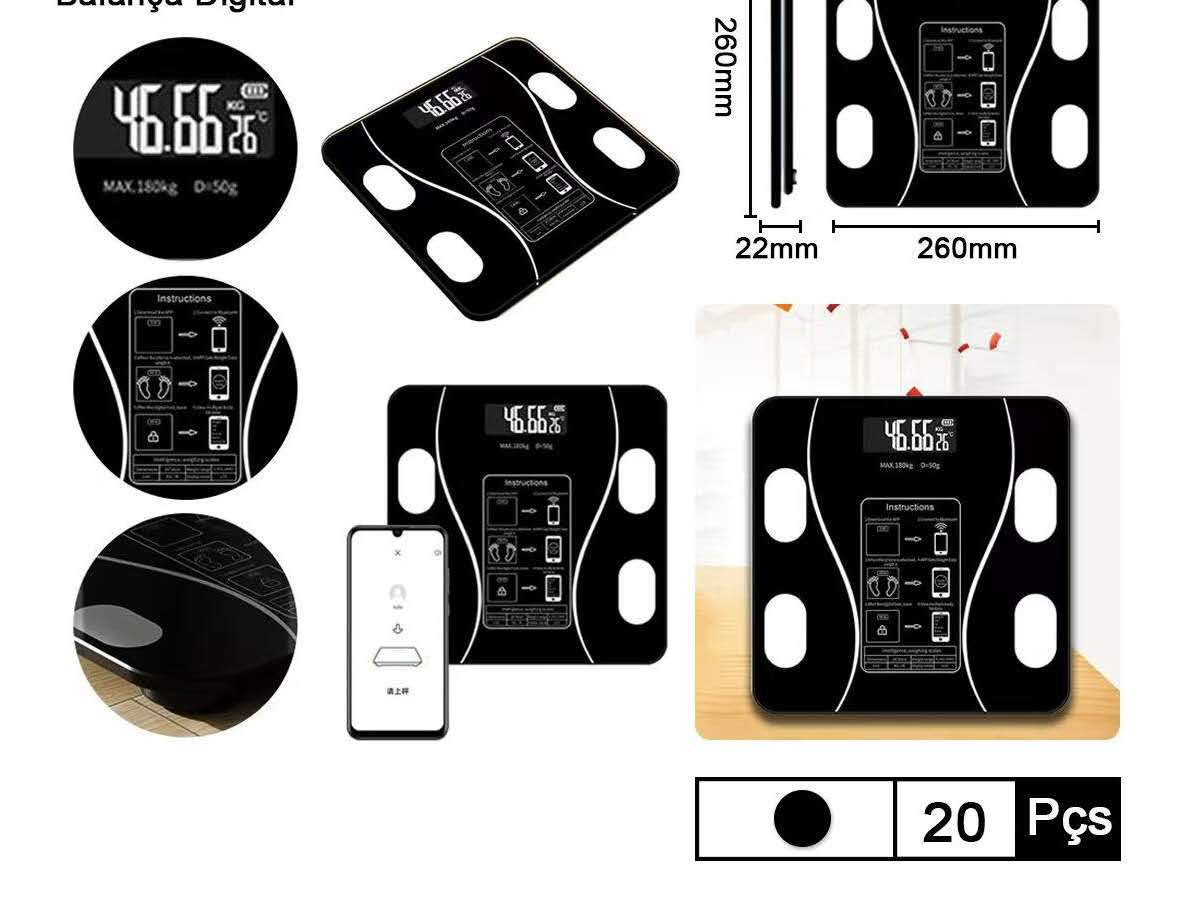 BALANÇA BIOIMPEDÂNCIA BLUETOOTH 180Kg IOSANDROID DS13879