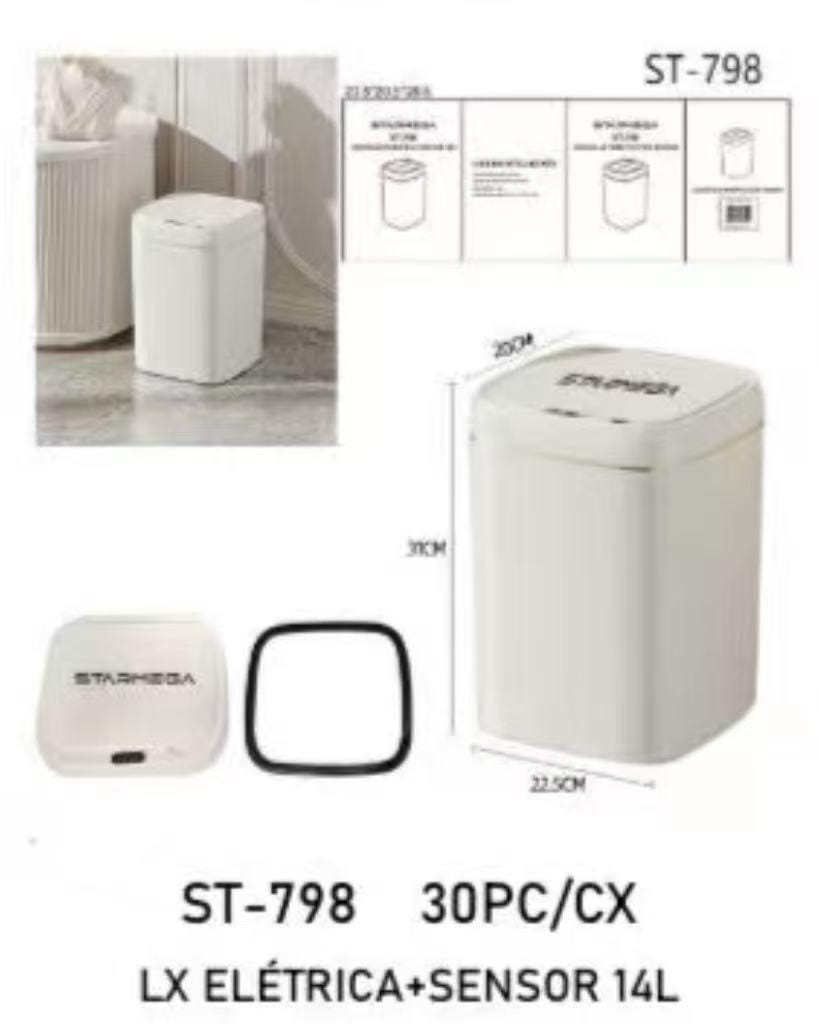 Lixeira Elétrica Automática Sensor Abertura Aproximação 14L ST798