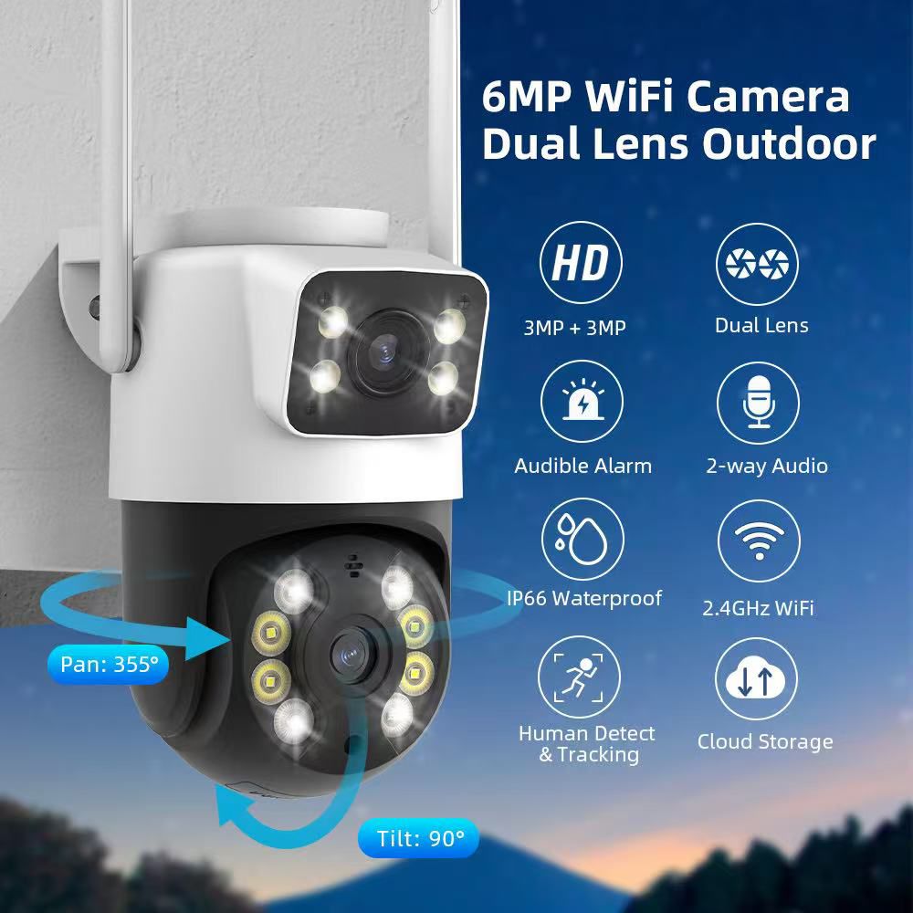 Câmera Dupla Ip66 Wifi Full Hd Prova Dágua Infravermelho Segurança ICSEE A28B